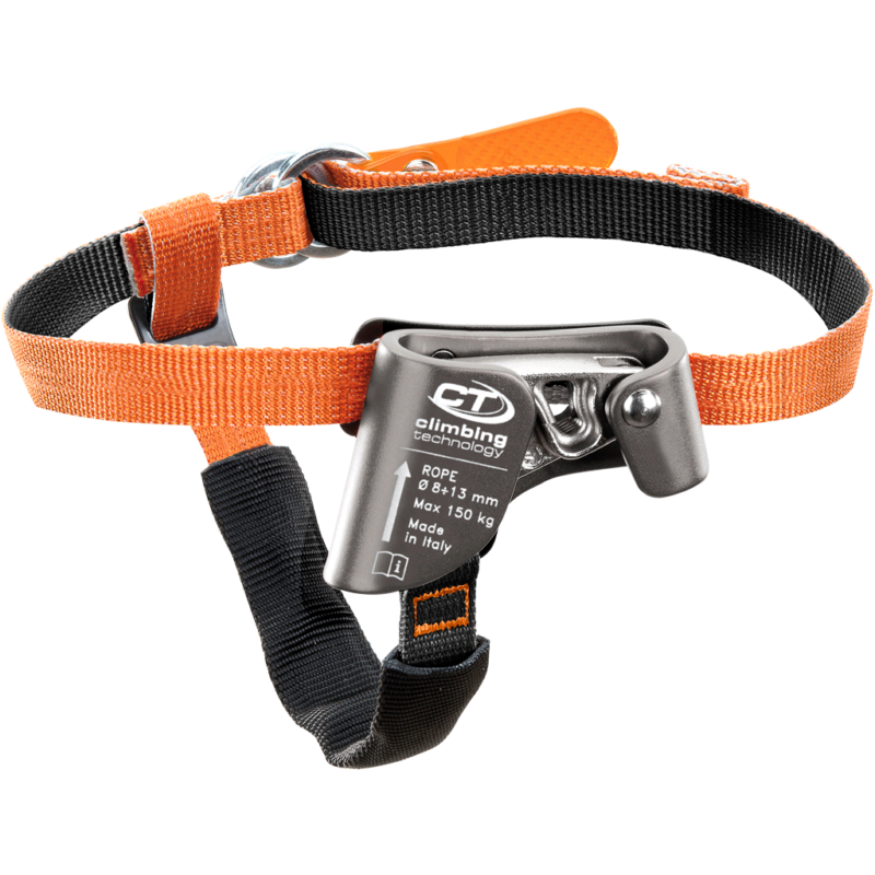 Klemme für den rechten oder linken Fuß, in Kombi mit einem Aufstiegsgriff (z. B. QUICK’UP+) oder einer ventralen Klemme (z. B. CHEST ASCENDER HC) verwendbar, vereinfacht und beschleunigt sie den Aufstieg am Seil.